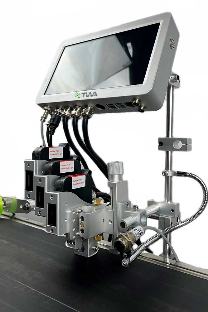A linha de Datadores TIJ TWA 10, 102, 103 e 104 foi desenvolvida para oferecer flexibilidade, alta qualidade de impressão e integração simples em diferentes tipos de linhas produtivas. A principal diferença entre os modelos está na quantidade de cabeçotes de impressão — o TWA 10 possui 1 cabeçote, enquanto o TWA 104 pode operar com até 4 cabeçotes simultâneos, permitindo ampliar a altura de impressão ou marcar múltiplos pontos ao mesmo tempo, de acordo com a necessidade da aplicação.